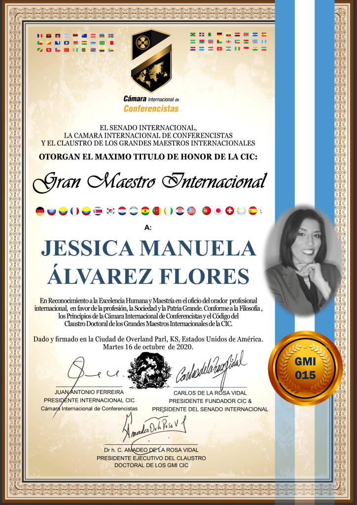El Gran Maestro Internacional es el más alto Título de Honor otorgado por la Cámara Internacional de Conferencistas. Es el Doctorado Honoris Causa de los Speakers a nivel global.